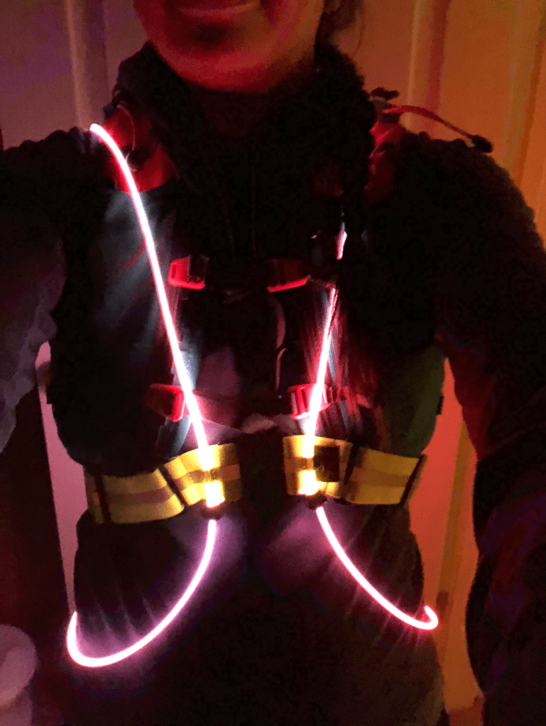 Here’s a photo of me running in the snow on a sunny day and another photo of me wearing the Noxgear Tracer.